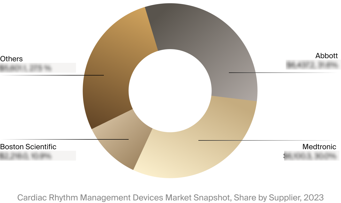 The full Market Snapshot includes a robust analysis of the competitive landscape for the cardiac rhythm management devices market. This includes estimated market revenue and market share for key players, such as Abbott, Medtronic, and Boston Scientific.